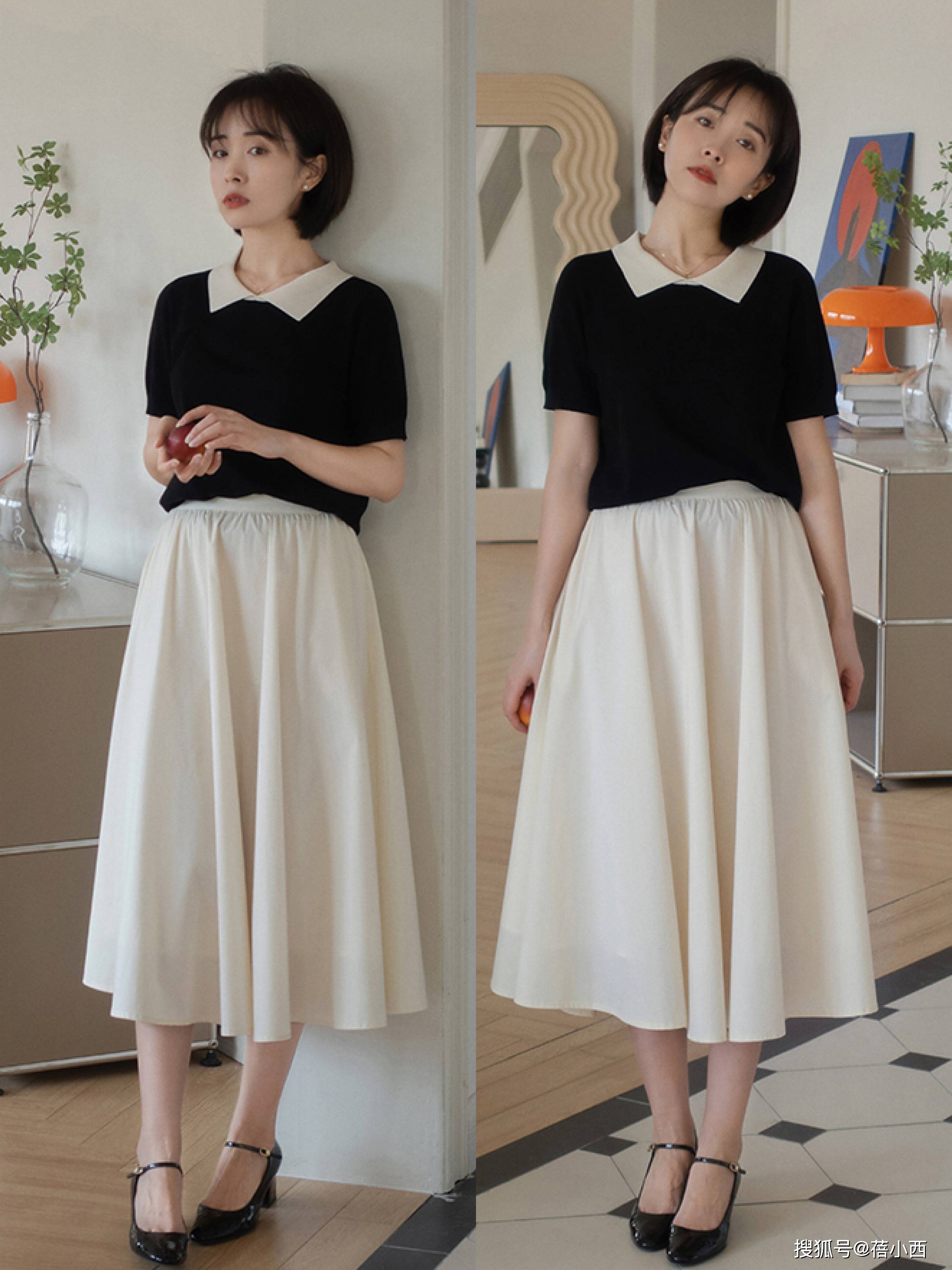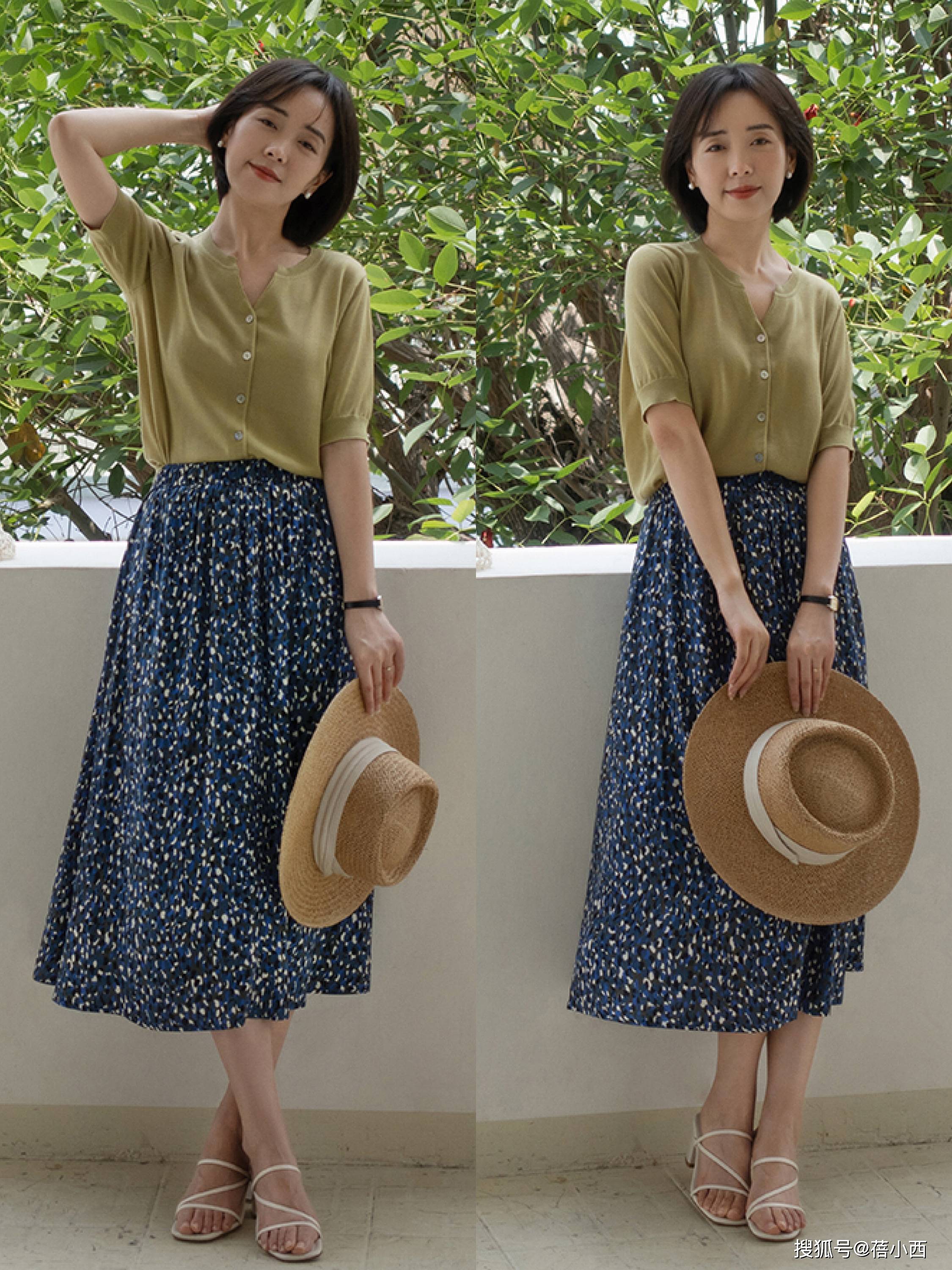裙装方面,建议选不遮脚踝的款式,这样更显轻盈与利落。夏日中长或略及中段的连衣裙也很实用,既能遮挡大腿粗壮,又能露出纤细脚踝,特别适合梨形身材,显高显瘦。