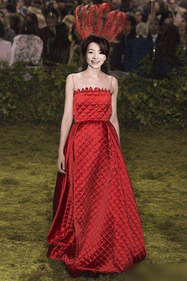 不需要华丽奢侈的配饰点缀,身穿一袭红色格棱吊带礼服裙,衬托的董卿皮肤白皙又光滑。一头半扎发更是显得温婉贵气,终于见识到了什么叫做“真正的美不需要过分装饰”。
