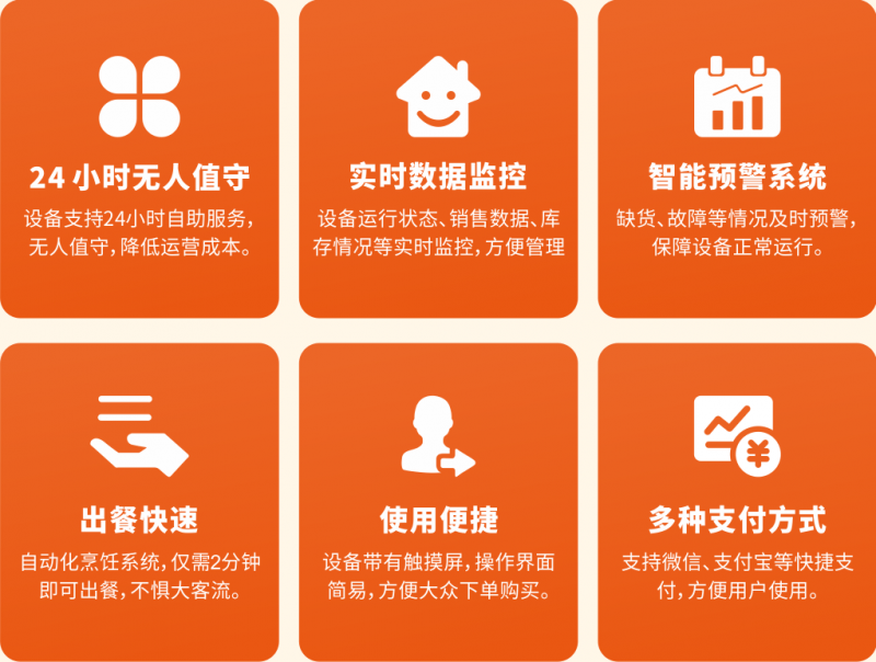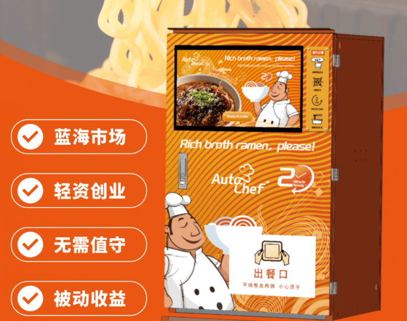 AutoChef 的产品销售场景极为广泛。无论是人员密集的交通枢纽站,还是充满活力的学校、医院,亦或是繁华热闹的商场、高速服务区、旅游景区,甚至是酒店、公寓、网吧、写字楼等场所,都能轻松适配。其占地面积小、布点灵活的特点,为创业者提供了更多的选择空间,能够根据不同场所的人流量和消费特点,精准投放设备,实现收益最大化。