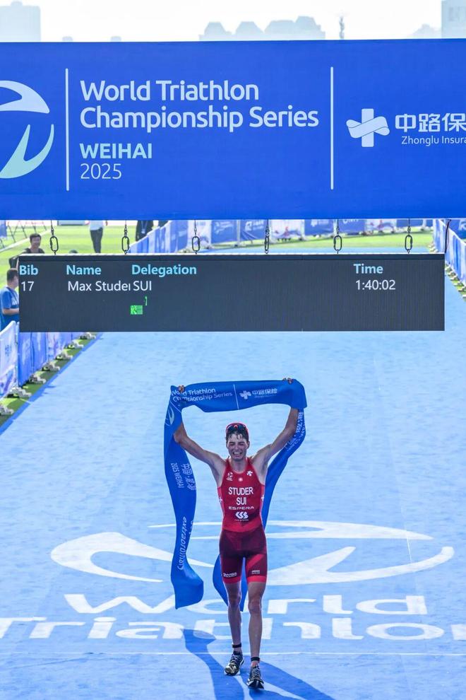 赛后采访中,马克斯·斯图德(Max Studer)表示,“我曾在2019年来威海参加铁人三项世界杯赛,那时是在半月湾举办,我获得了男子组亚军。今年是世锦赛,我又回到了这里。而且,我今年有更多时间留在中国,和中国铁人三项队一起训练,我还学习了中文。我能在威海铁人三项世锦赛系列赛中,首次登上冠军的领奖台,感觉太棒了!相较于2019年世界杯赛自行车赛道的大坡,今年的赛道更加平坦,离市区也更近,周围有很多人为选手加油,威海赛事组织工作很棒,我很喜欢威海!”