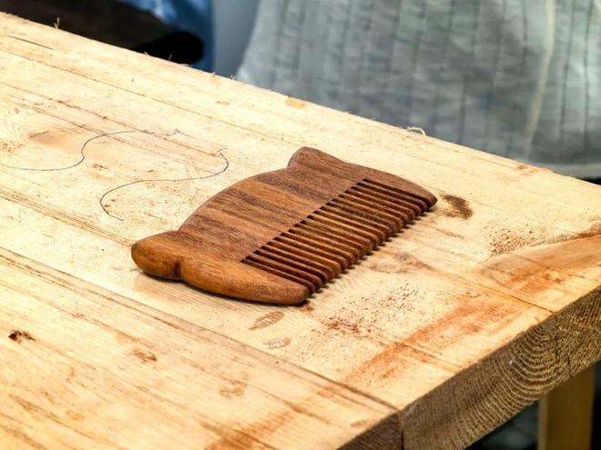 孩子们忙得不亦乐乎,不少陪同前来的家长也当起了帮工。陆瑾萱和妈妈张福萍选择的也是猫咪造型的梳子。“老师做的梳子非常圆润光滑,特别漂亮!我为什么做不出这种效果……”女儿的话还没说完,张福萍赶忙鼓励,“已经很棒了,我们再磨磨看。”采访中,张福萍一个劲点赞:“这个活动特别棒,既能帮助孩子们了解传统文化,又能锻炼动手能力。”